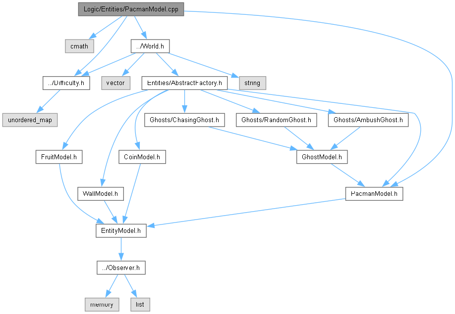 Include dependency graph for PacmanModel.cpp: